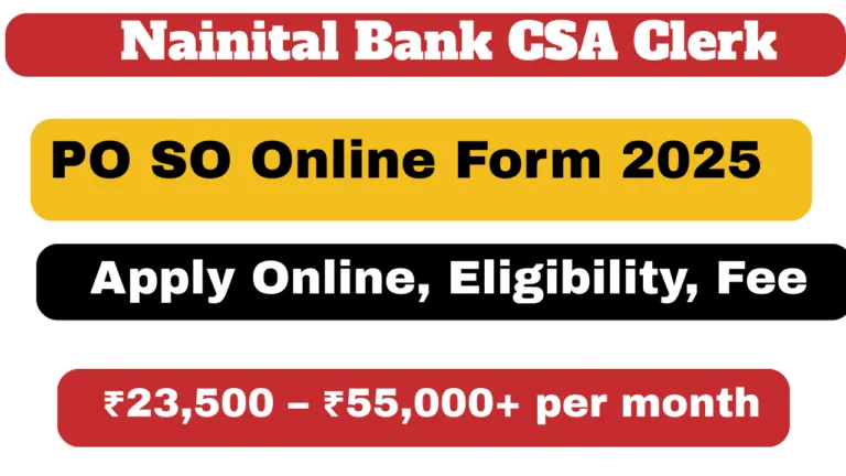 Nainital Bank CSA, Clerk, PO, SO Online Form 2026: The Nainital Bank Recruitment 2026 has started for multiple posts including …